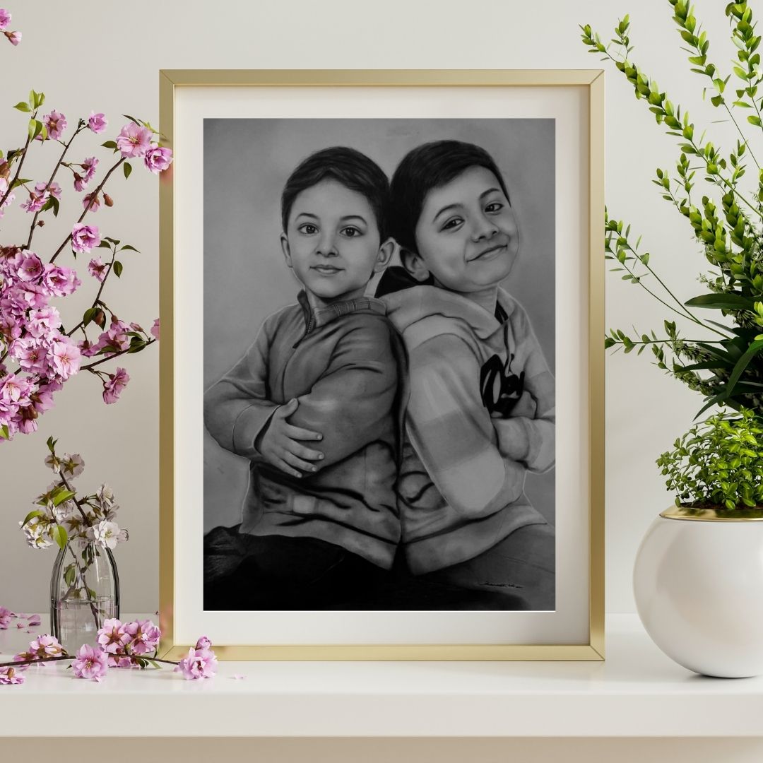 Charcoal Portraits: Capture your memories with a stunning, hand-drawn charcoal portrait. Our talented artists are dedicated to delivering high-quality, personalized art with passion and precision. Whether it's a personal portrait or a special moment, each piece is meticulously created to bring out the finest details and emotions.