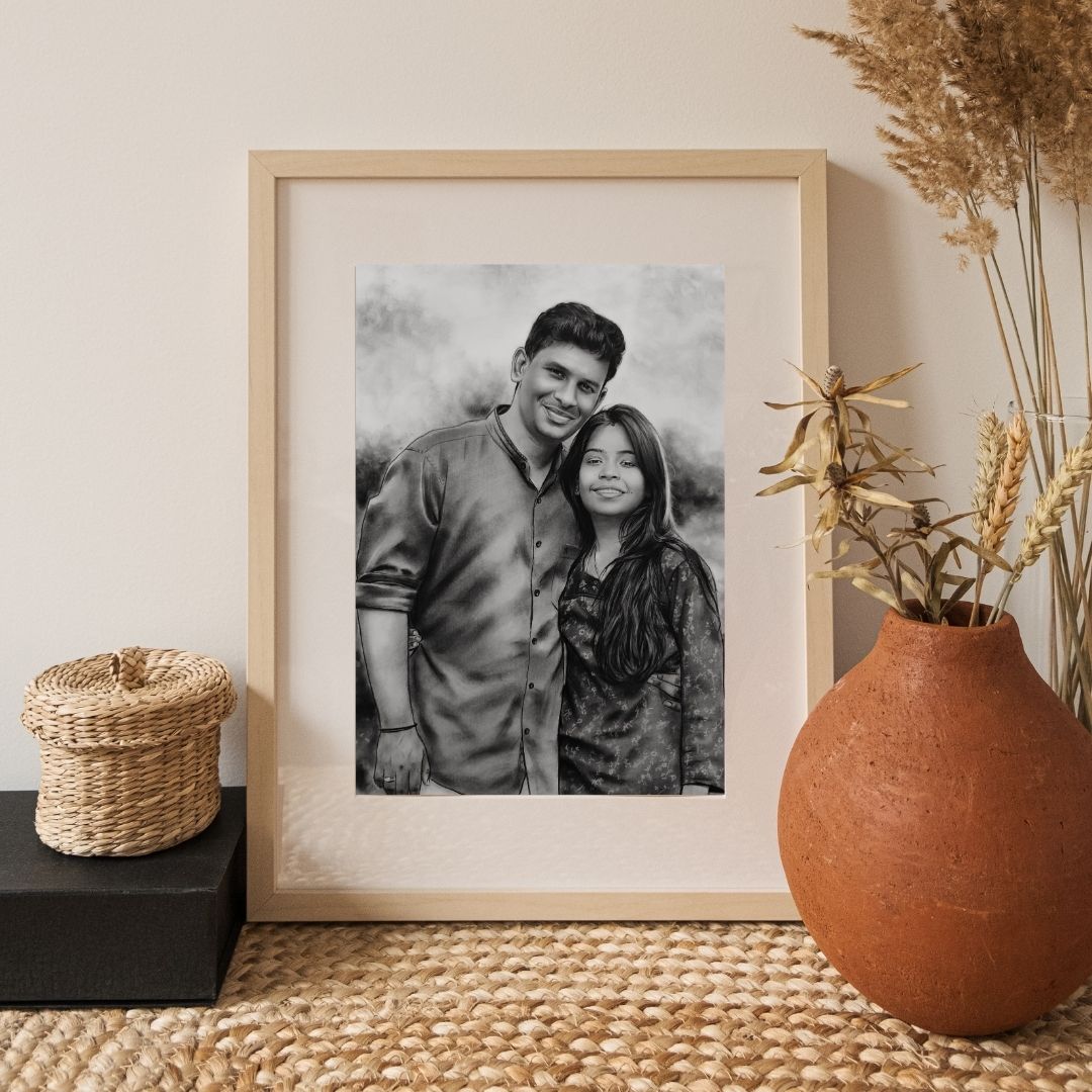 Charcoal Portraits: Capture your memories with a stunning, hand-drawn charcoal portrait. Our talented artists are dedicated to delivering high-quality, personalized art with passion and precision. Whether it's a personal portrait or a special moment, each piece is meticulously created to bring out the finest details and emotions.